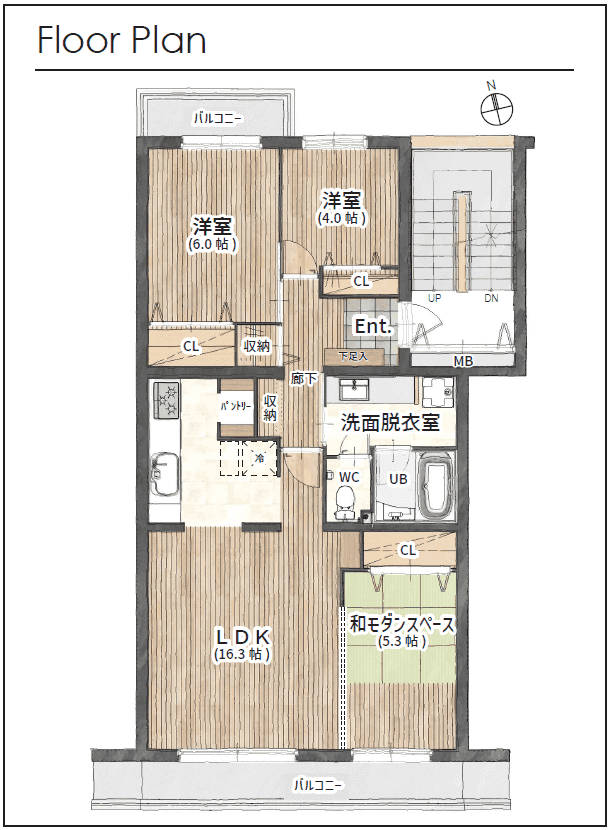 既存の間仕切り壁を取り払い、LDKにつながる和モダンスペースを新設しました。